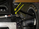 Les fixations de la suspension avant-gauche et la barre de torsion endommagent la coque en carbone du châssis 591. Mais contrairement à ce que peut laisser penser la photo,
