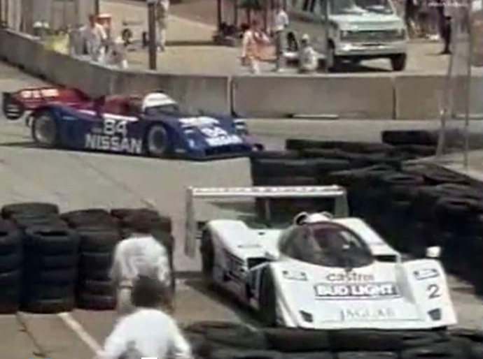 Deux semaines après sa victoire sous la pluie de Mid Ohio, Davy Jones s'élance de la première ligne sur le circuit urbain très bosselé de la Nouvelle Orélans. La course est baptisée en français "Grand-Prix du Mardi Gras". Le premier virage du circuit est serré et étroit. Arrivé côte à côte avec la Toyota de Fangio II, Davy Jones n'a pas d'autre choix que de tirer tout droit dans l'échappatoire. Le pilote américain sera poussé par les commissaires et repartira bon dernier avec presque un tour de retard. On peut voir que Chip Robinson sur la Nissan #84 a eu le même problème et fait marche arrière. Davy Jones effectuera une belle remontée mais terminera 4ème, au pied du podium. Cette photo est une capture d'écran d'une vidéo de l'IMSA GTP.
