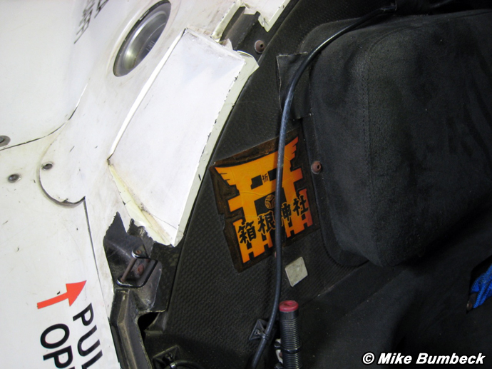 Cette photo a été prise par Mike Bumbeck en 2007. Chaque châssis MXR-01 était protégé par une plaque liée à un temple.