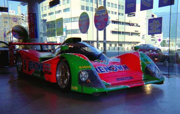 Cette photo date de 2001. Je l'avais trouvée sur un blog japonais au moment de la création de mon site. Ce châssis MXR-01 a servi au duo Terada-Yorino pour disputer le championnat japonais des voitures de sport JSPC 1992. En effet, cette voiture est chaussée en pneus Dunlop et porte les stickers de ce manufacturiers alors qu'en Europe et au Mans, Mazda utilisait des Michelin. C'est la version qui a terminé la saison à Mine. Mazda a semble-t-il exposé cette voiture dans divers concessionnaires Efini Mazda.