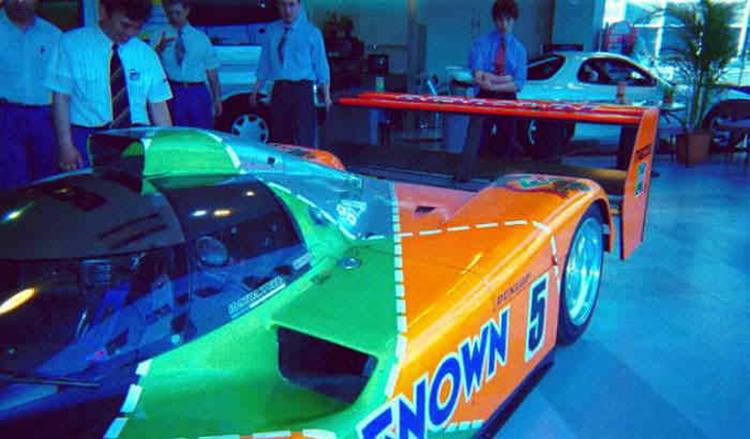 Cette photo date de 2001. Je l'avais trouvée sur un blog japonais au moment de la création de mon site. Ce châssis MXR-01 a servi au duo Terada-Yorino pour disputer le championnat japonais des voitures de sport JSPC 1992. En effet, cette voiture est chaussée en pneus Dunlop et porte les stickers de ce manufacturiers alors qu'en Europe et au Mans, Mazda utilisait des Michelin. C'est la version qui a terminé la saison à Mine. Mazda a semble-t-il exposé cette voiture dans divers concessionnaires Efini Mazda.