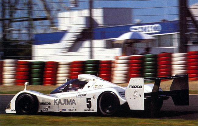 Cette photo a probablement été prise dans la partie du circuit derrière les stands. On peut supposer que le châssis utilisé à Suzuka WSC n'était pas le même que celui utilisé en Europe à Donington. Mazda possédait cinq châssis et il est probable que celui-ci est soit le 003 ou le 005. L'un des deux Kajima n°6 du Mans, envoyé au Japon. Car il n'est pas les mêmes spécificités que la voiture vue à Donington : il possède les deux gros retroviseurs, alors que celui qui court en Europe a les petits. La prise d'air est à nouveau verticale. Et le n°5 est dans la même police que celle vue à Silverstone et au Mans. La MXR qui sera à Magny-Cours étant proche de celle de Donington, on peut penser que Mazda a évité des déplacements inutiles de châssis.