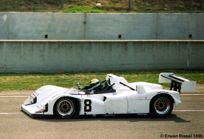 Cette photo a été prise par Erwan Rissel alors que Pierluigi Martini sort des stands. On notera que le profil du capot derrière les roues arrière est très proche de la XJR-14 mais que des éléments ont été rajoutés. Le capot du châssis 001 est différent.