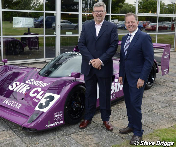 Il est ici en compagnie de Martin Brundle, devant le châssis 591 avec lequel le britannique avait remporté Monza.