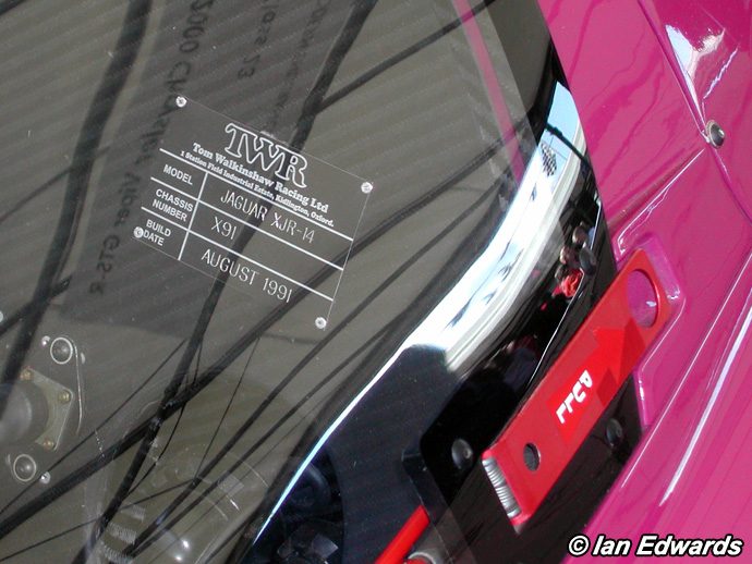 Merci à Ian Edwards d'avoir pris cette photo en gros plan de la plaque de châssis lors du Festival of Speed de Goodwood en juillet 2010. Cette plaque n'apparaissait pas sur la voiture lors de la journée de présentation à la presse. Ce châssis X91, construit en 2003, devait remplacer le châssis 791, le seul assemblé en août 1991. C'est pourquoi la date d'août 1991 apparait sur la plaque. Mais le propriétaire Aaron Hsu ayant fait restaurer le vrai châssis 791 pour en faire une show car, ce nouveau châssis a donc pris le nom de X91.