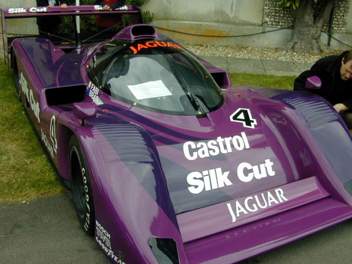 Cette photo a été prise à Goodwood en 2000. Il s'agit probablement du châssis XJR-14/591, revenu à l'usine TWR au milieux des années 90. On voit très nettement que Tom Walkinshaw l'a fait repeindre à la hâte en version Silk Cut, ce châssis ayant servi en IMSA. Il reste le petit trou d'aération du cockpit, à la base de l'essuie glace, créé pour la version GTP à cause du changement de la prise d'air moteur. TWR a exposé à plusieurs reprises cette voiture qui n'avait ni moteur ni boite de vitesse. C'était avant la restauration de 2003.