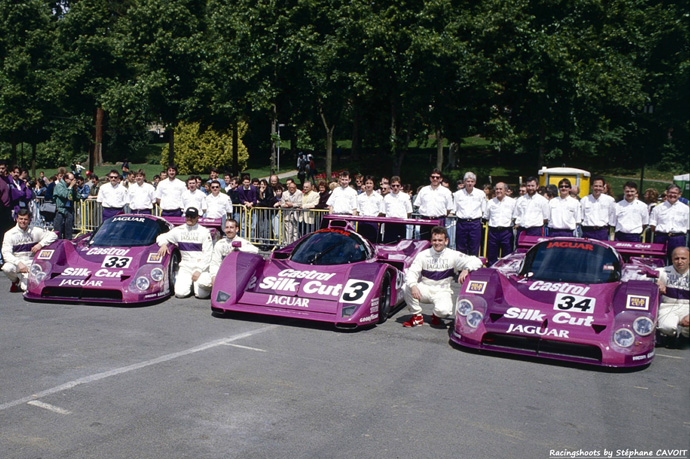 Cette photo a été prise lors du pesage par Stephane Cavoit. L'équipe TWR avait amené deux XJR-14 V8 et trois XJR-12 V12. Une 4e XJR-14 sera engagée par Suntec.