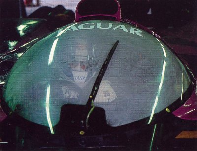 Star Wars ? Non, XJR-14 ! Il y a eu à Monza comme un léger problème de buée dans le poste de pilotage des Jaguar. En effet, l'aération du cockpit n'était constituée que de trois petits trous sur le haut de la bulle, juste en dessous de la prise d'air moteur.