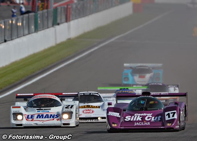 Cette photo a été prise par Fotorissima lors au départ de la course de Group C Racing de Spa Classic 2018. Christophe d'Ansembourg et MecAuto engageaient de nouveau leur XJR-14/591. Le pilote belge va mener la 1ère course du samedi mais abandonner à cause d'un problème de suspension.